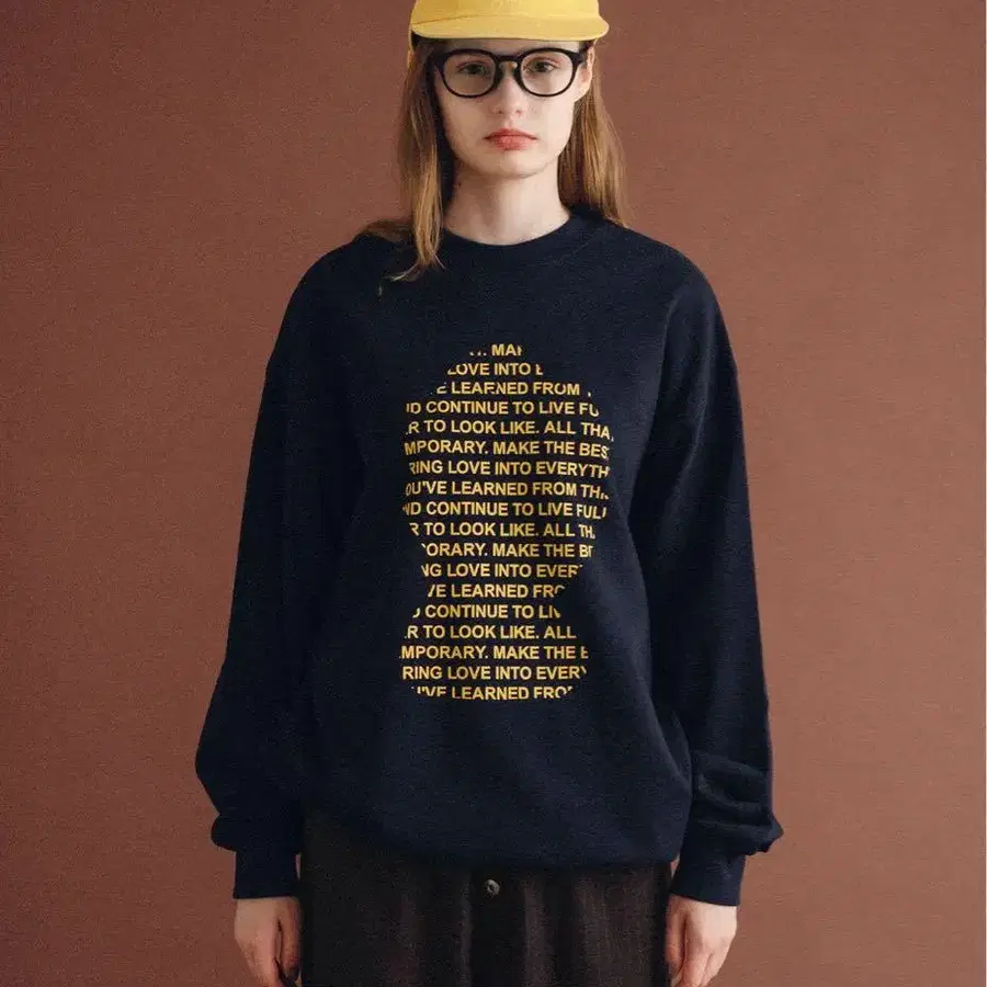 네이비 텍스트 프린트 오버 사이즈 맨투맨
