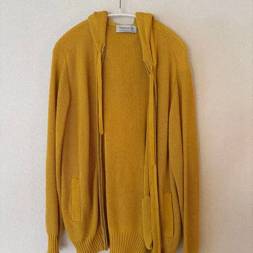 투모로우랜드 머스타드 후드 부착 니트 가디건
