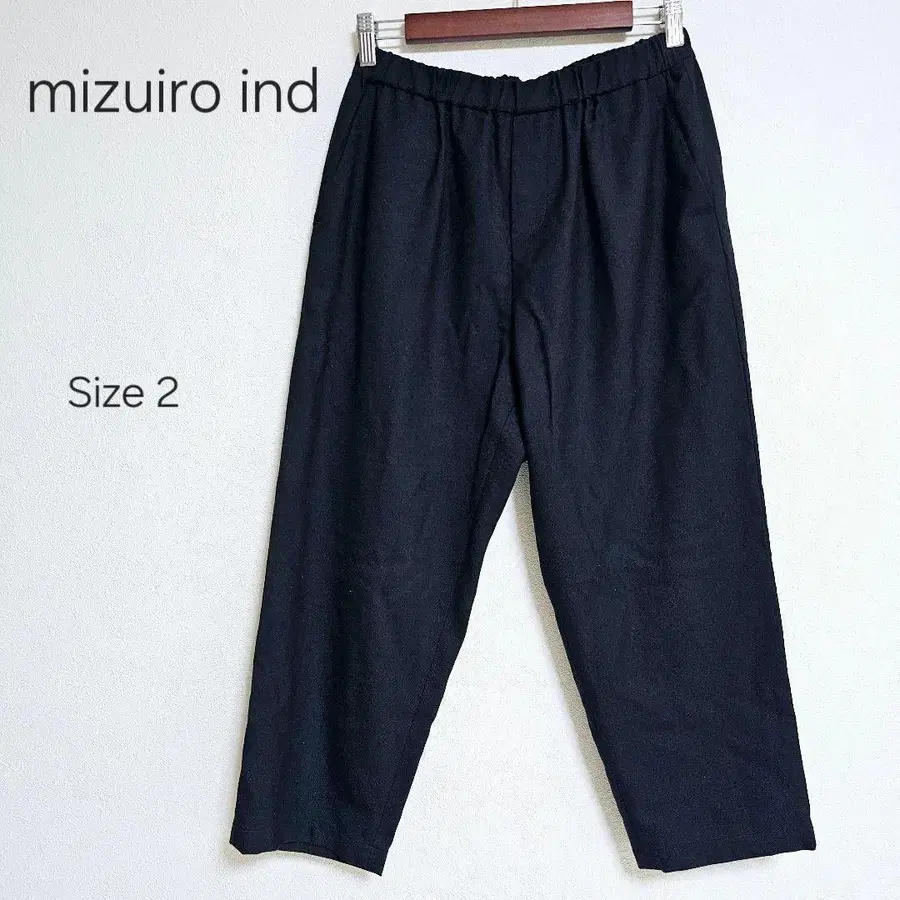 미즈이로 인드 블랙 와이드 팬츠 허리밴딩 심플