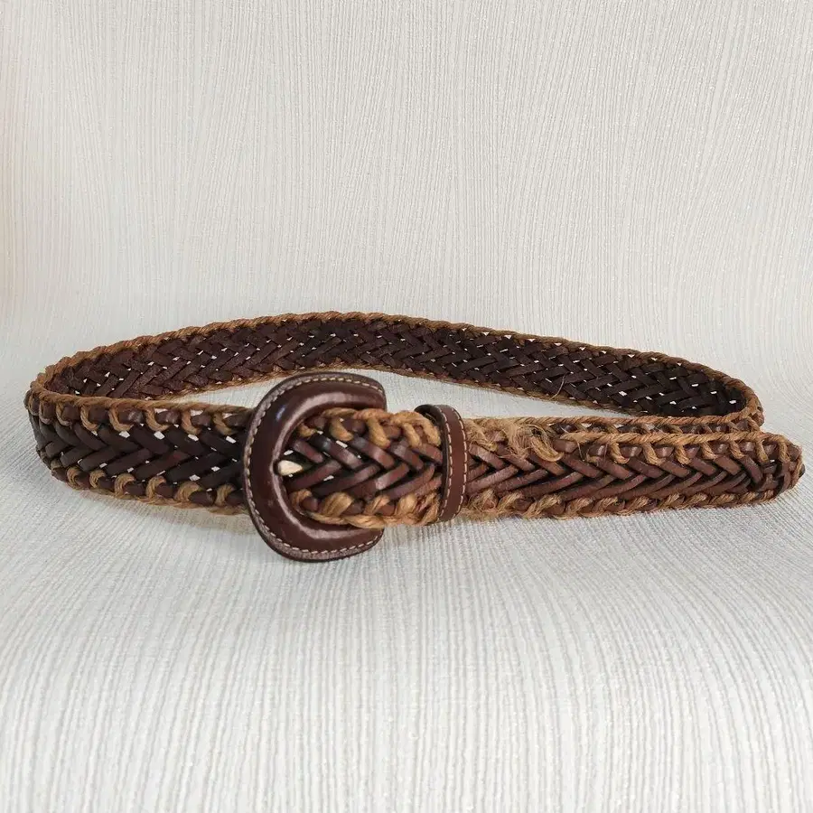 가죽과 린넨의 2색 콤비 벨트 (브라운, 길이 105cm) (075)