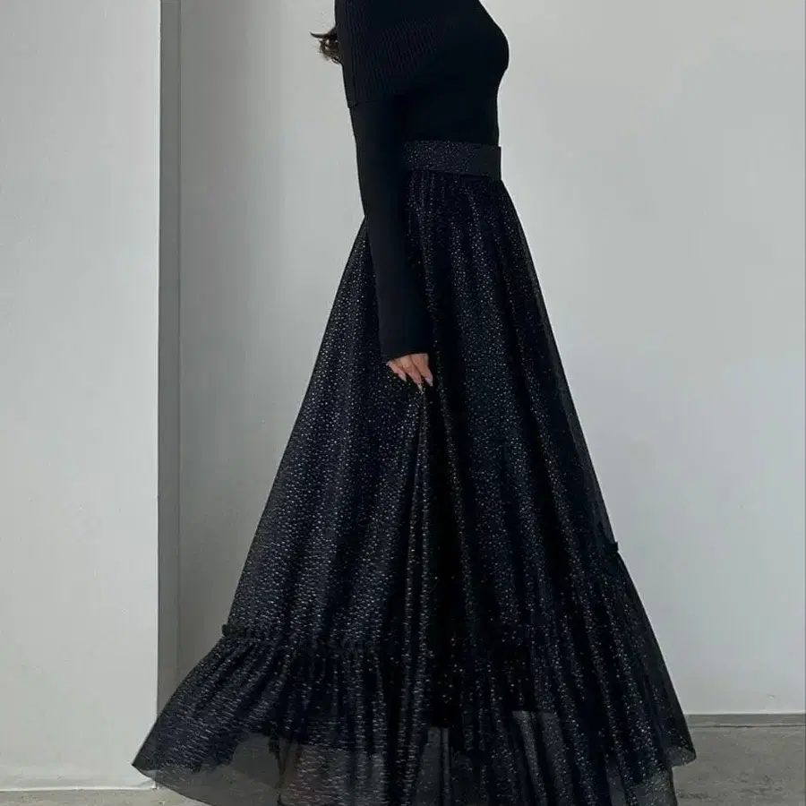 Louere 라메 플레어 샤샤 스커트 블랙 L 사이즈