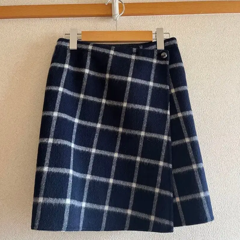 네이비와 화이트 체크 무늬의 랩스커트, 다크 그레이 색상도 있습니다.