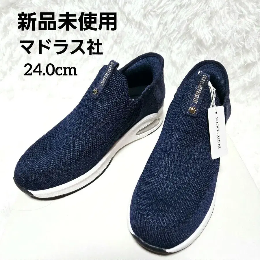 새상품 마드라스사 에어솔 슬립온 24.0cm 네이비 메쉬