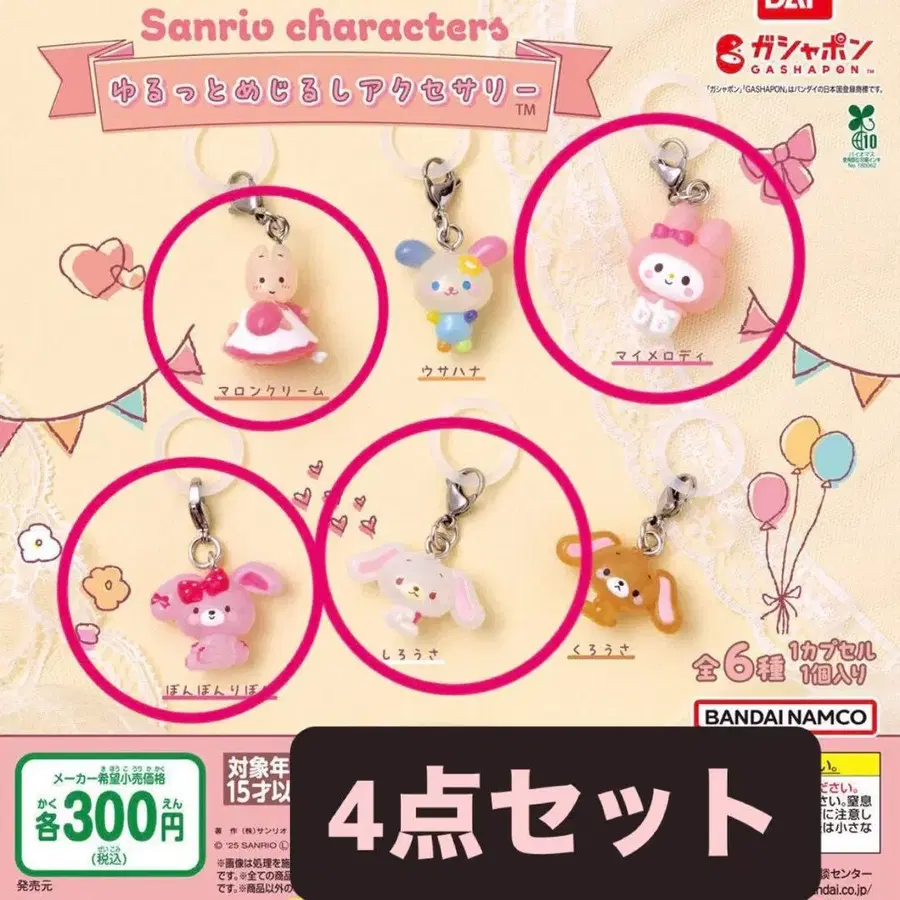 산리오 캐릭터즈 윳토 메지루시 액세서리 전 6종 컴프 세트