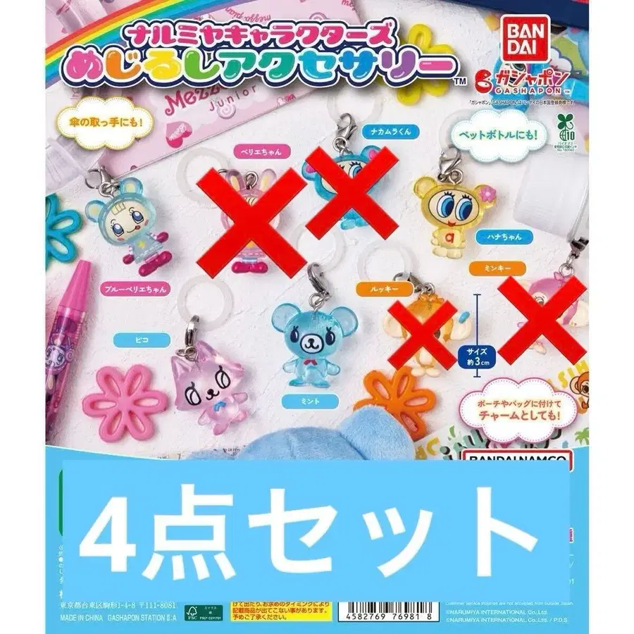 나루미야 캐릭터즈 메지루시 액세서리 4개 세트입니다( *´꒳`* )⟡.·인기 메지루시 액세서리입니다. 클리어하고 표정이 풍부한 캐릭터들이 정말 귀여워요 ♡ 판매 중인 상품 중에서도 저렴하게 드릴 수 있으니 꼭 구매해 주세요(*´ ◒ `*)⟡.*