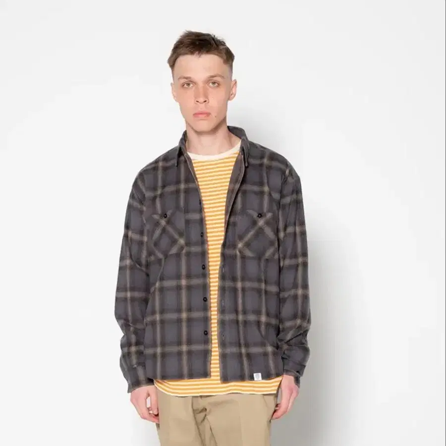 BEDWIN 옴브레 체크 셔츠 M