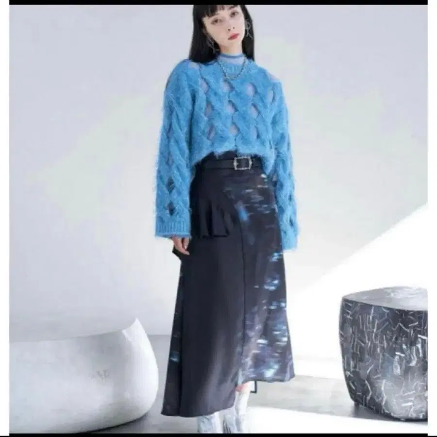 오리지널로 흐릿한 듯한 플라워 무늬를 사용한 고급 스커트입니다.