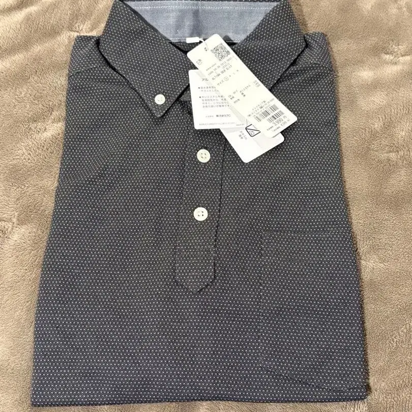 자동 번역되었어요. 원문보기다크 그레이 도트 무늬 피케 셔츠, M 사이즈, 폴리에스테르와 코튼 혼방 소재.