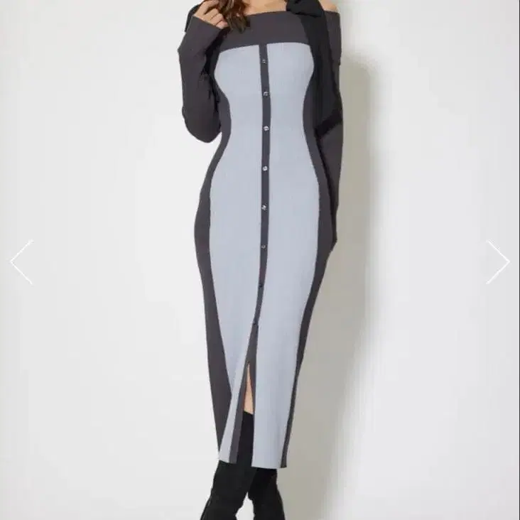 rienda 바이컬러 오프숄더 리본 니트 원피스