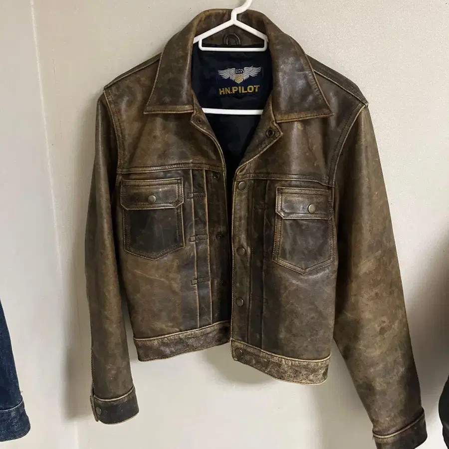 HN.PILOT 브라운 가죽 재킷