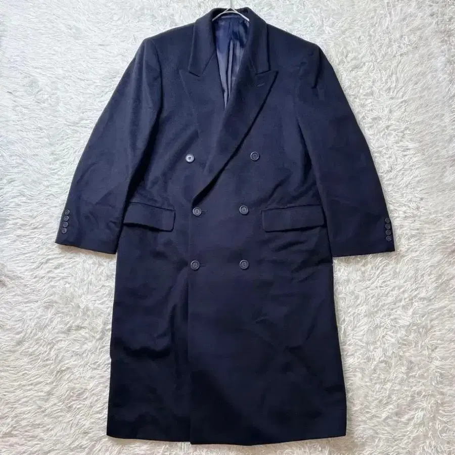 캐시미어 울 더블 브레스트 체스터 코트 롱 코트 L 네이비
