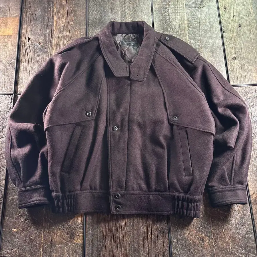 구제 의류 멜톤 울 봄버 자켓 짙은 갈색 L 와이드 소매 쇼트 기장 자켓