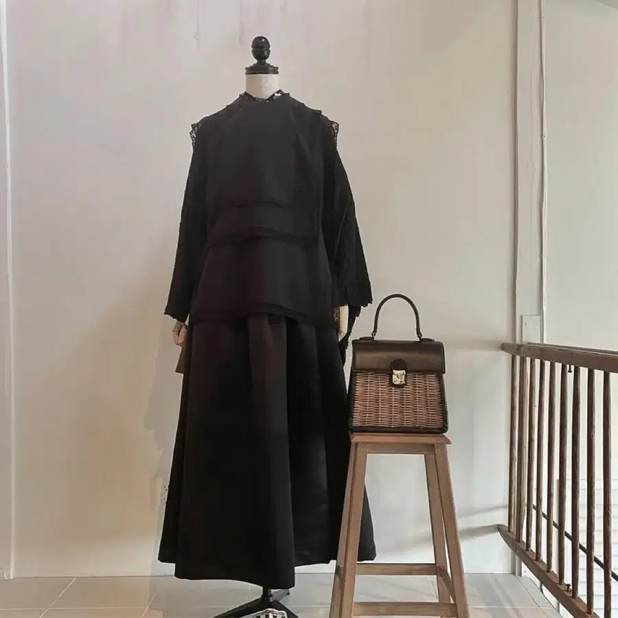 [h.NAOTO] FRILL 롱 베스트 블랙