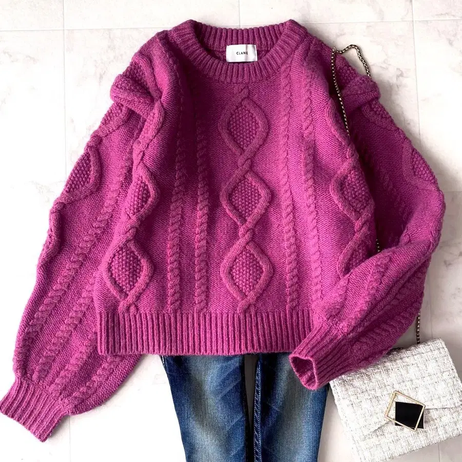 새상품급 클라네 턱 숄더 케이블 니트 입체 패턴 루즈핏 핑크
