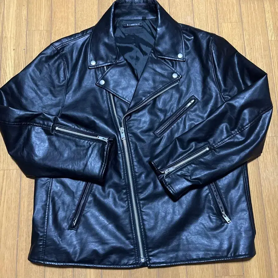A&S selection 블랙 가죽 더블 라이더 자켓