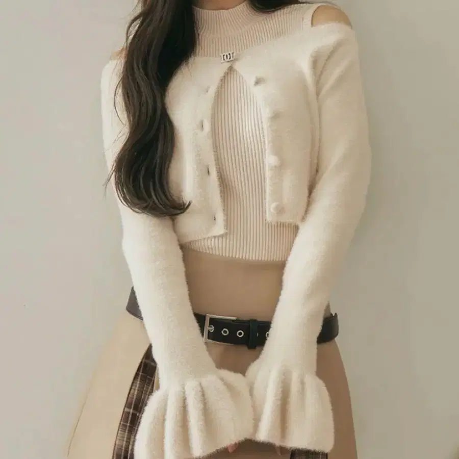 포근한 질감이 여성스러움을 돋보이게 하는, 샤기 가디건 x 리브 니트탑 세트 아이템!