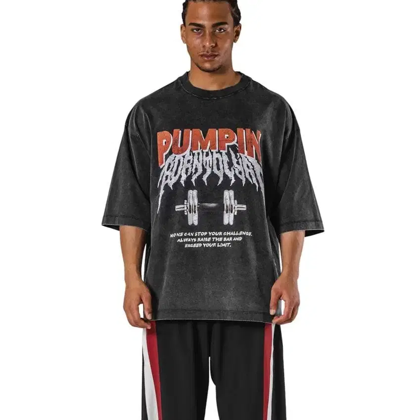 LYFT 덤벨 그래픽 빈티지 티셔츠 블랙 L 사이즈