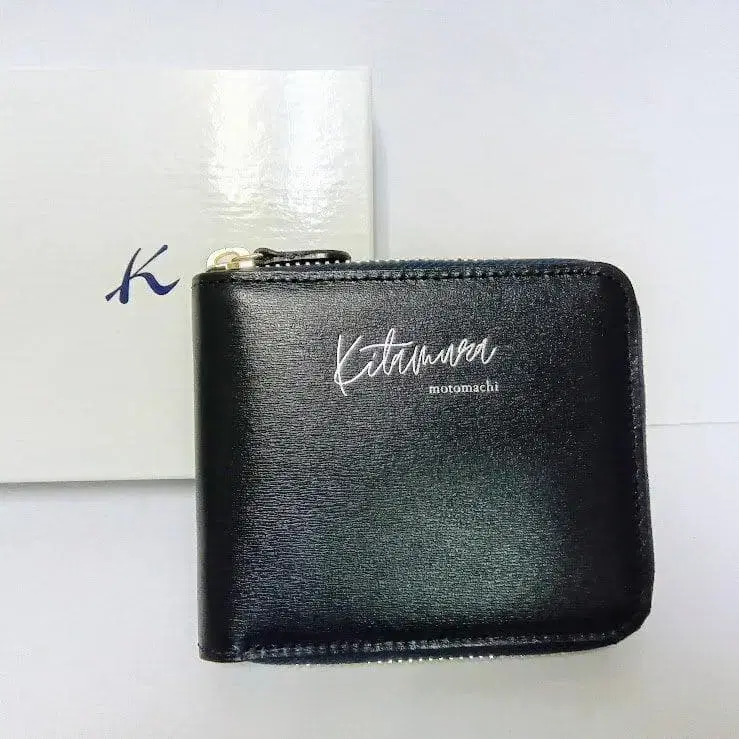손글씨 느낌의 캐주얼한 키타무라 로고 금박이 포인트인 접이식 지갑입니다.