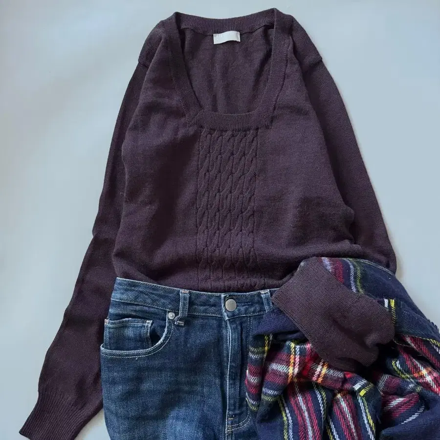 울 100%의 가볍고 따뜻한 긴팔 니트입니다.