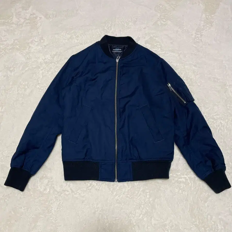 네이비 UNION STATION 제조 S 사이즈 점퍼, 지퍼 포켓 부착.