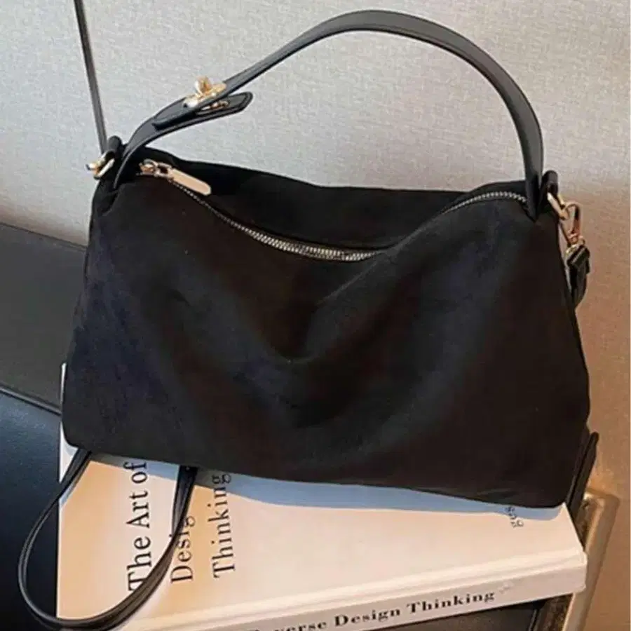 고급스러운 광택감이 매력적인 벨로아 소재를 사용한 블랙 숄더백.