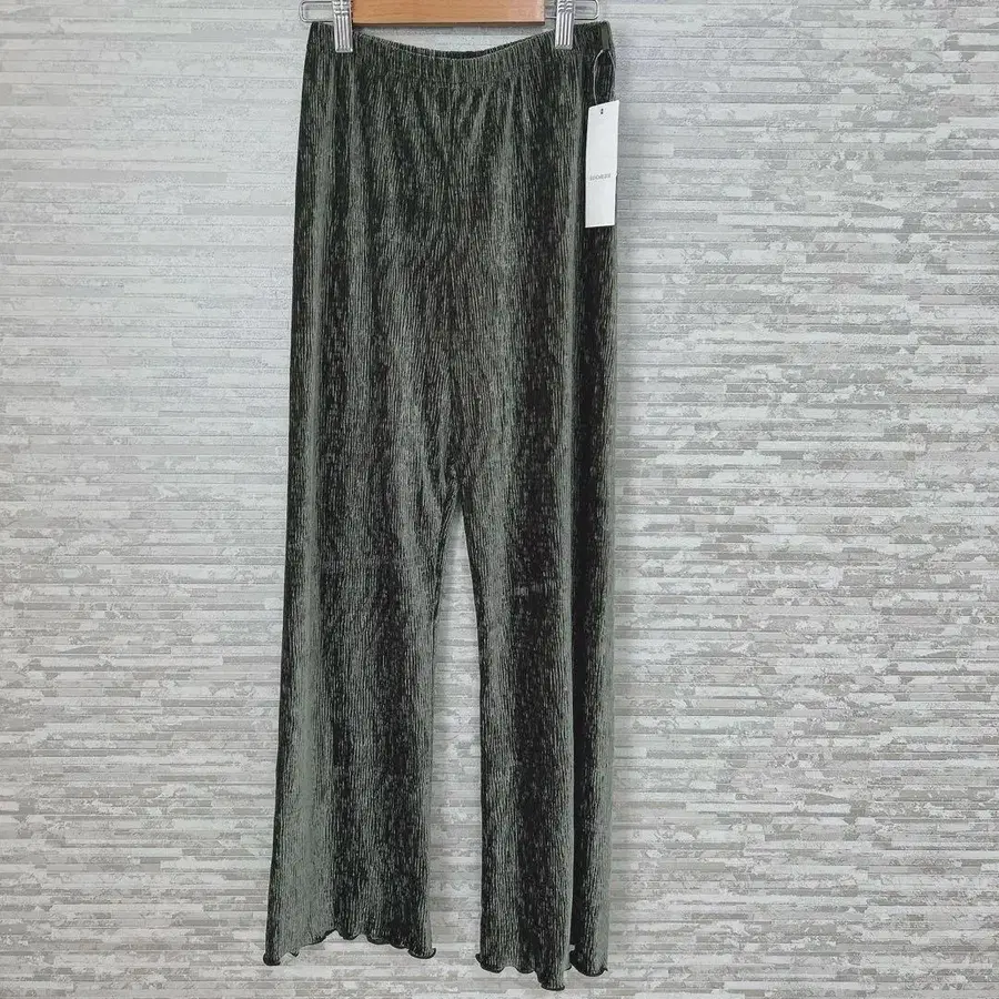 ELENCARE DUE의 광택감 있는 벨로아 소재에 섬세한 플리츠 가공을 더한 팬츠.