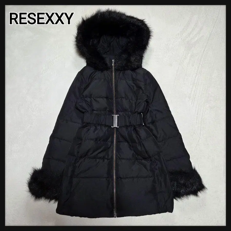 RESEXXY 다운 코트 벨트 포함 인조 모피 포함 블랙