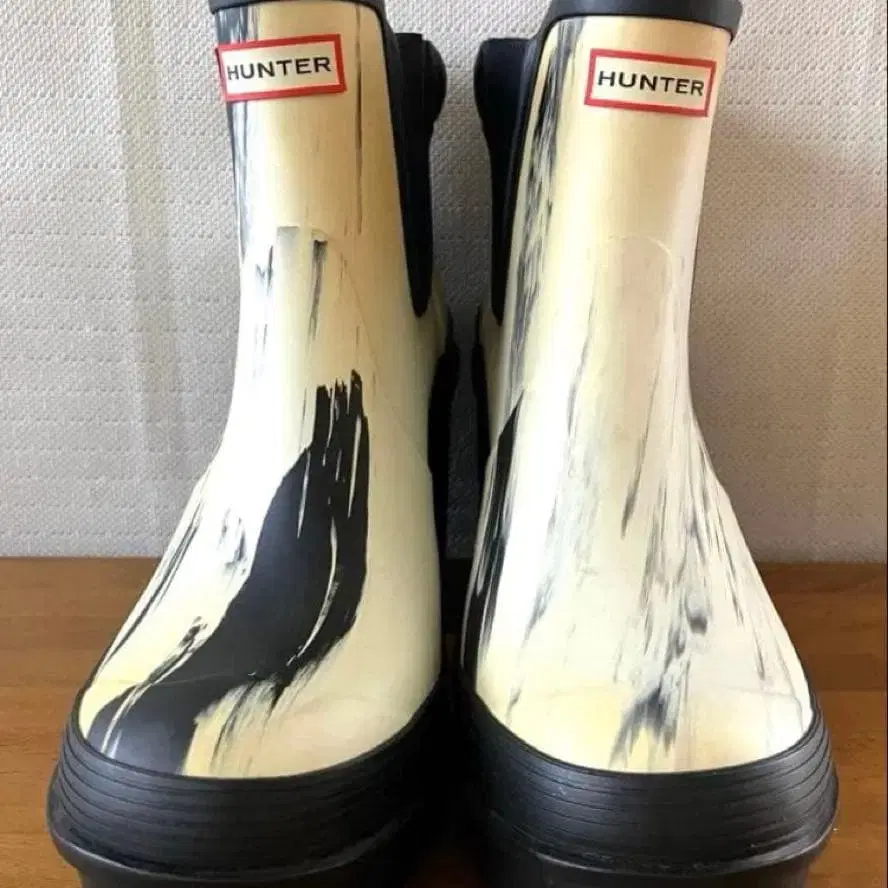HUNTER 헌터 숏 레인부츠 마블 패턴 통굽 힐