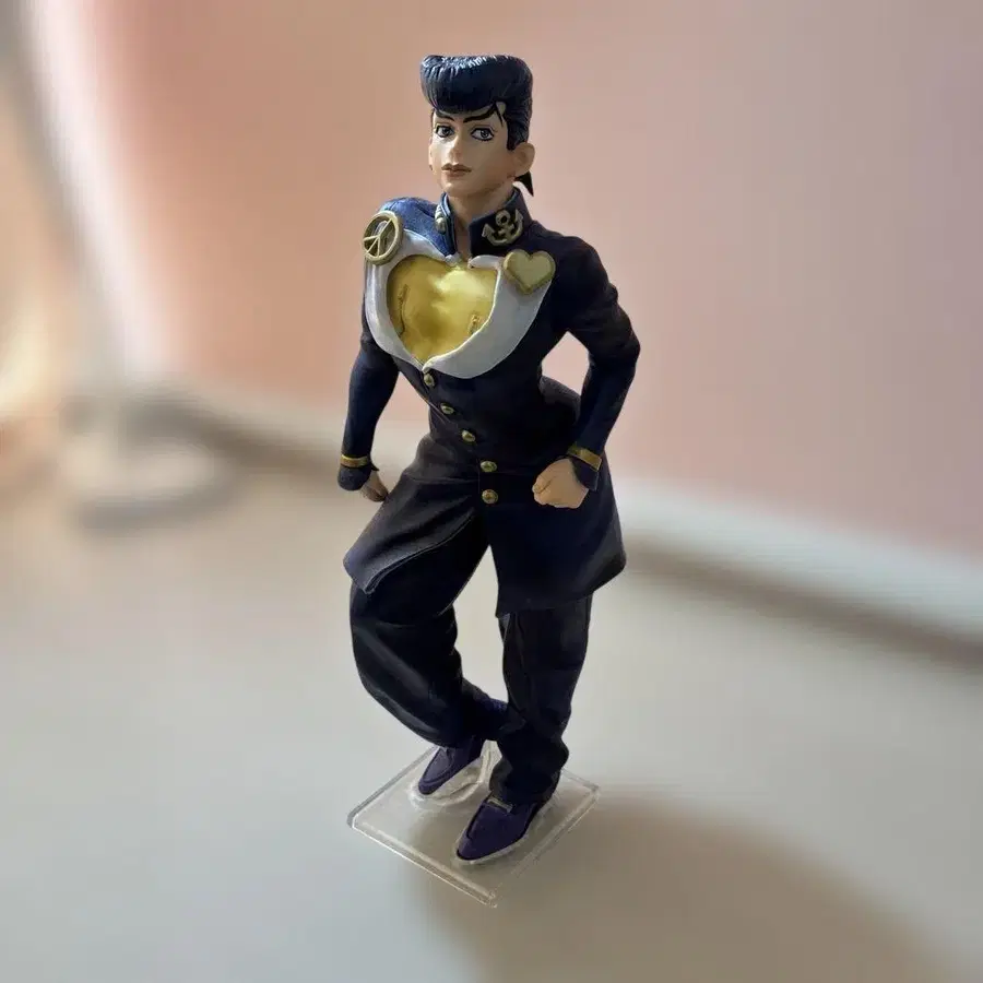 자동 번역되었어요. 원문보기죠죠의 기묘한 모험 캐릭터를 입체화한 피규어, 블랙과 보라색 코스튬이 특징입니다.