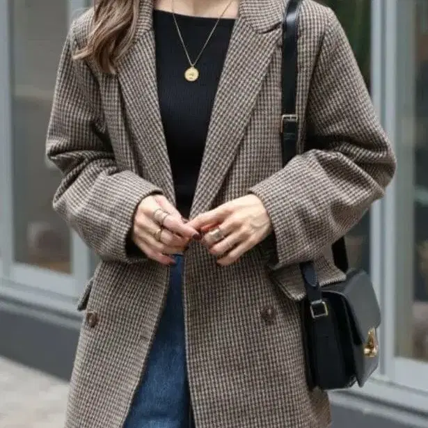 트레디셔널한 느낌의 건클럽 체크 더블 자켓