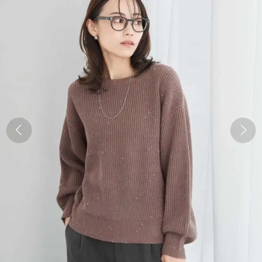 실과 동일 컬러의 라메와 스팽글이 더해진 반짝이는 니트.