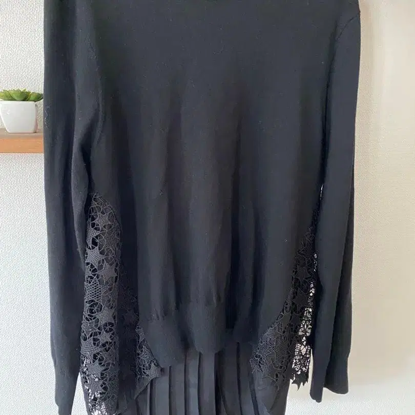 네미카 블랙 레이스 플리츠 긴팔 니트
