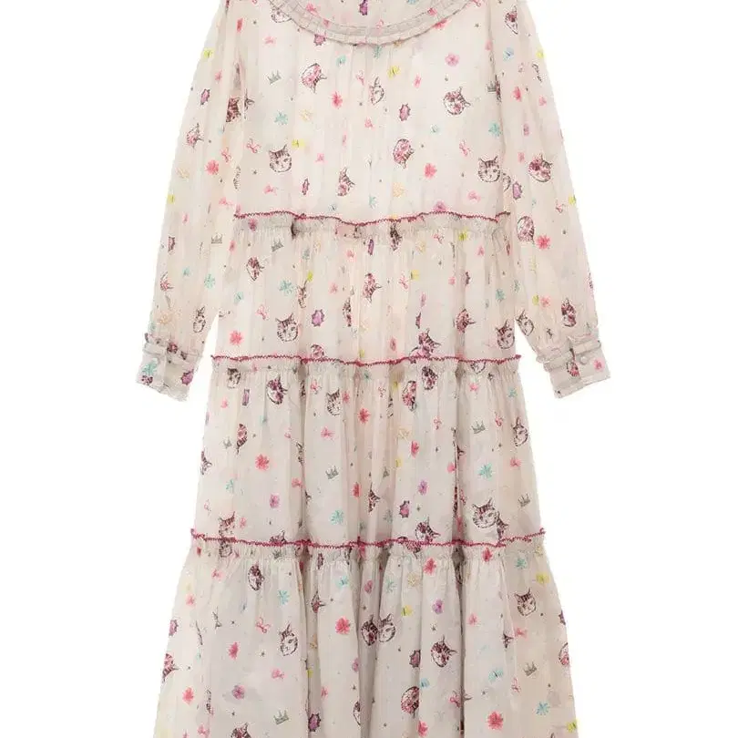 PINK HOUSE 주얼리 캣 프린트 프릴 개더 롱 원피스