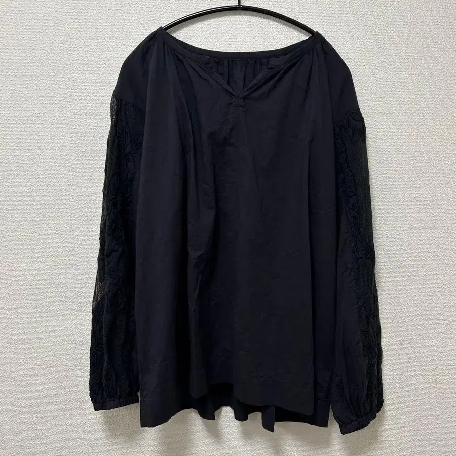 카구레 메쉬 자수 슬리브 블라우스 네이비 GA26-23S001