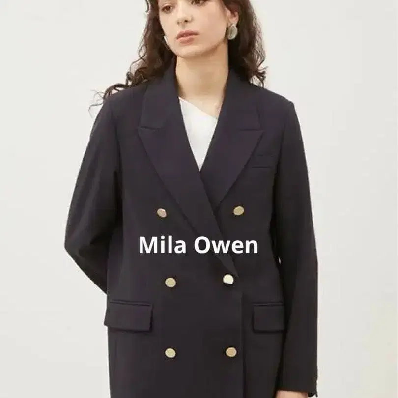 브랜드의 스탠다드라고 할 수 있을 정도로 사랑받는 [ Mila Owen ]의 롱 기장 더블 블레이저. 골드 버튼이 반짝이는 이 자켓을 올해는 더욱 버전 업했습니다.