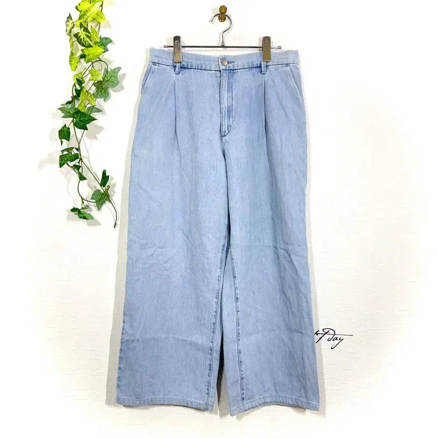 유니클로 와이드 데님 팬츠 (L) 라이트 블루 이지 블리치 앵클