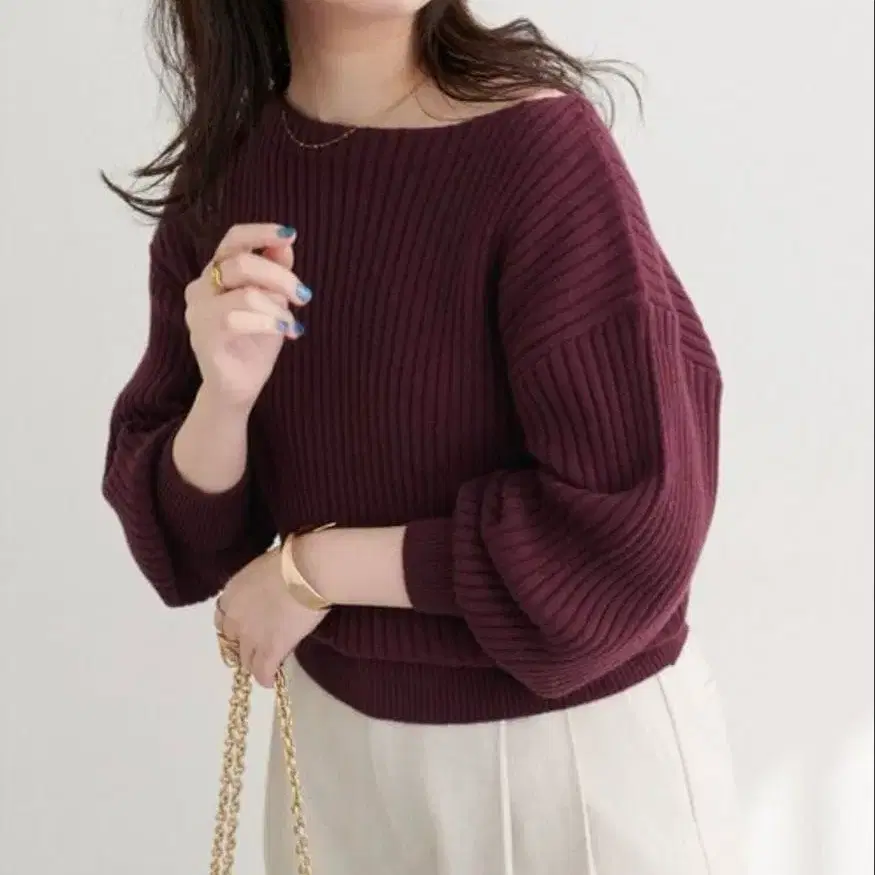 내추럴 꾸뛰르 니트 스웨터 쫀득 와이드 리브 퍼프 소매 니트 보르도