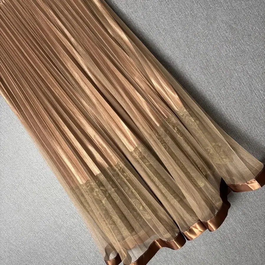 호박 포트 브라운 플리츠 스커트 허리밴딩 레이스 튤 M