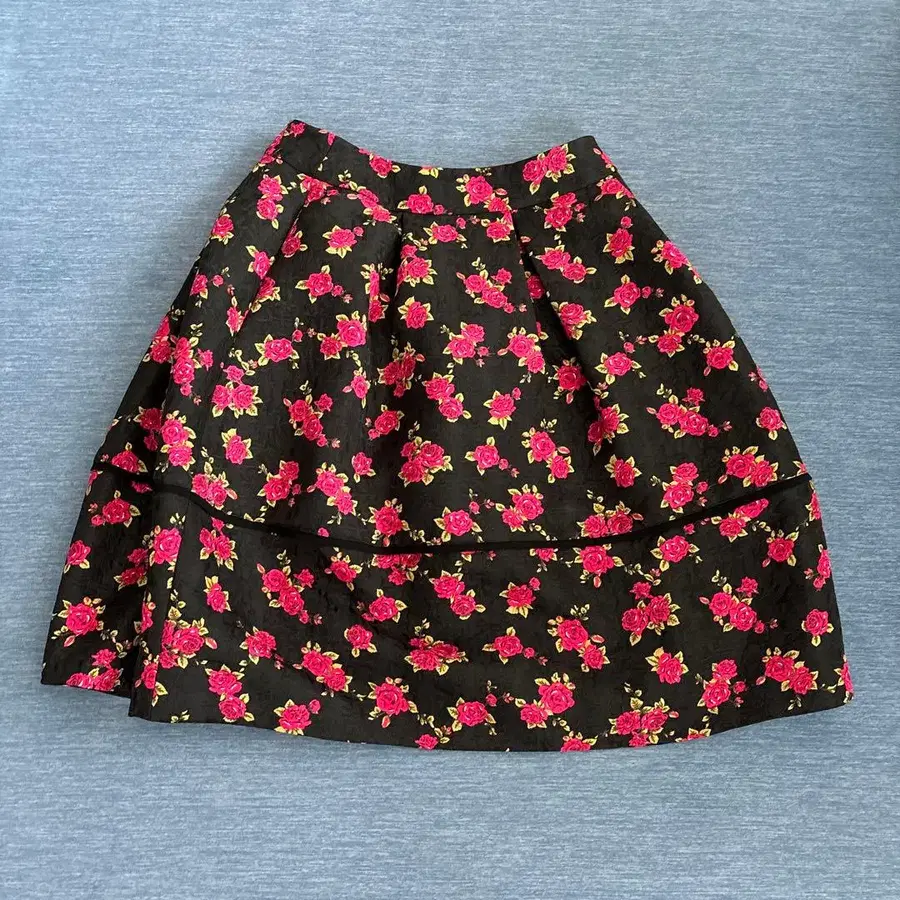 엠즈 그레이시 38 플레어 스커트 블랙 베이스에 빨간색 장미 무늬