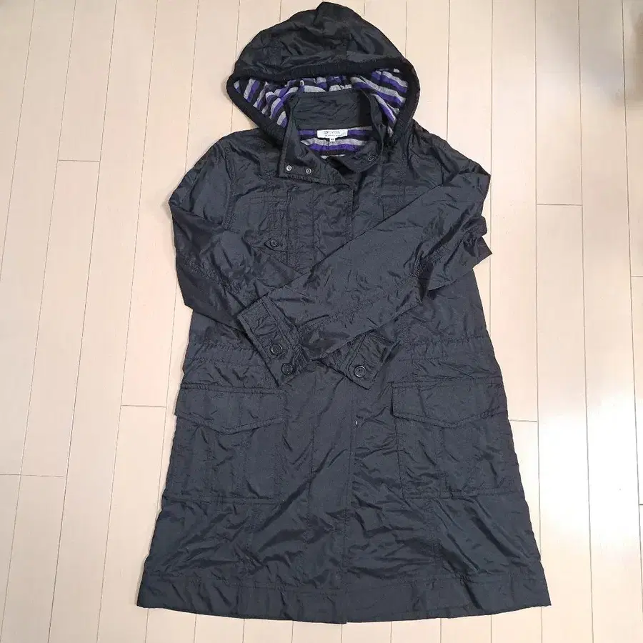 SONIA 블랙 후드 부착 롱 코트(자켓)