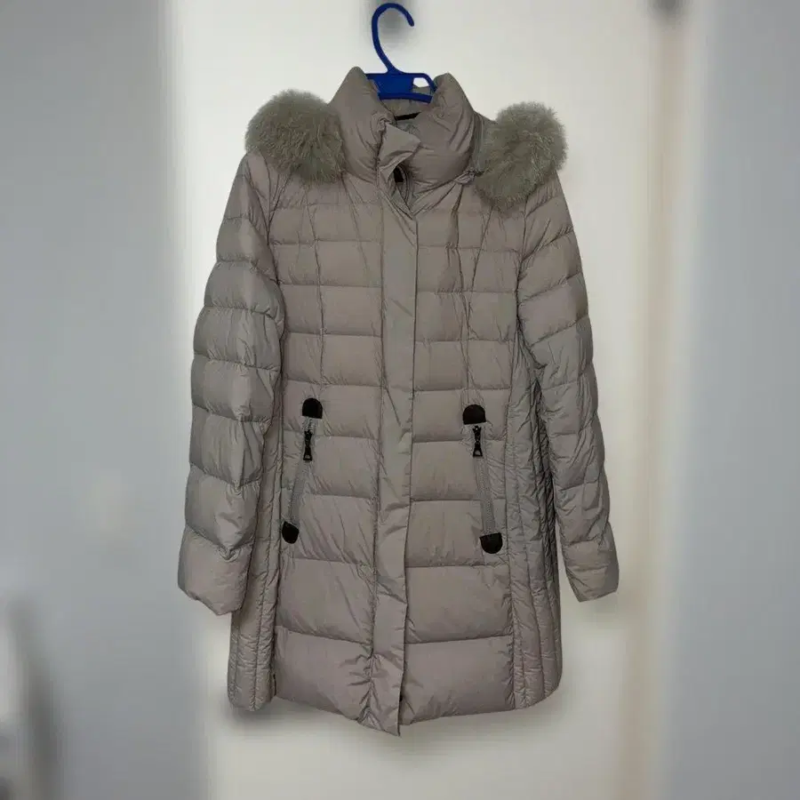 핑크 베이지 후드 부착 롱 다운 자켓 L 사이즈