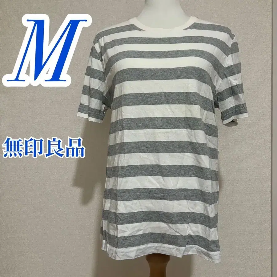 무인양품 그레이 화이트 T셔츠 컷소 보더 면 폴리에스테르