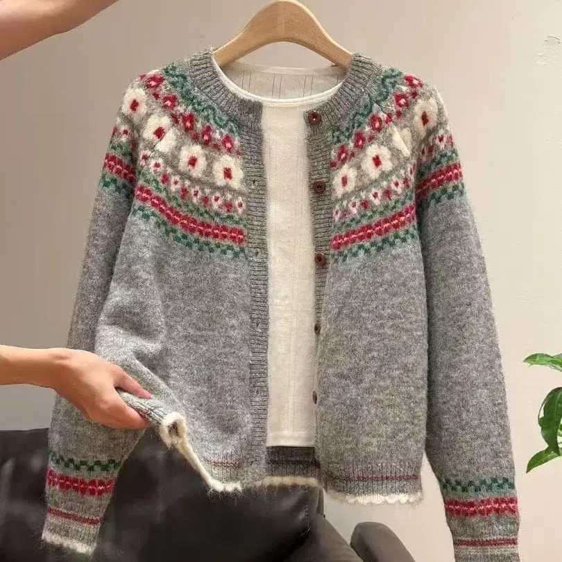 • SHIPS 노르딕 니트 아이보리 레드 그레이
