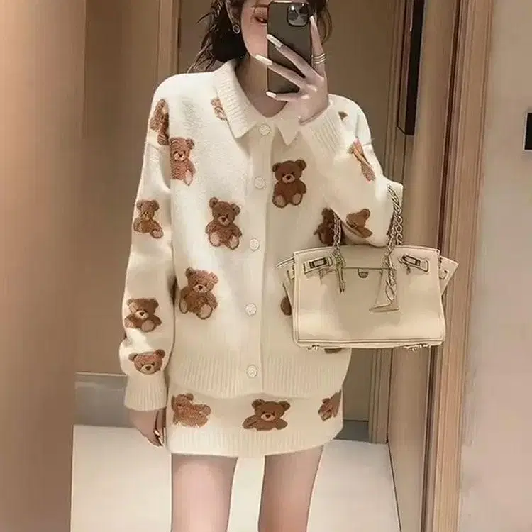 꽃무늬 입체 자수 플라워 모헤어 혼방 니트 가디건 개성파 복슬복슬