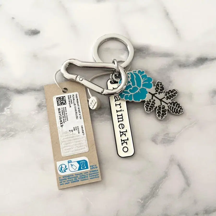 [ marimekko/마리메꼬 ] 카라비너 포함 키링 파랑 장미 택 포함