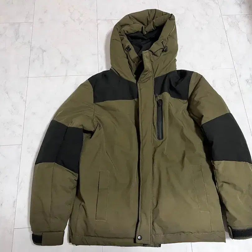 후드 부착 올리브 그린 다운 자켓