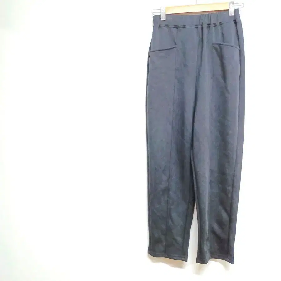 포켓이 달린 그레이 슬랙스, 허리밴딩으로 쾌적한 착용감.
