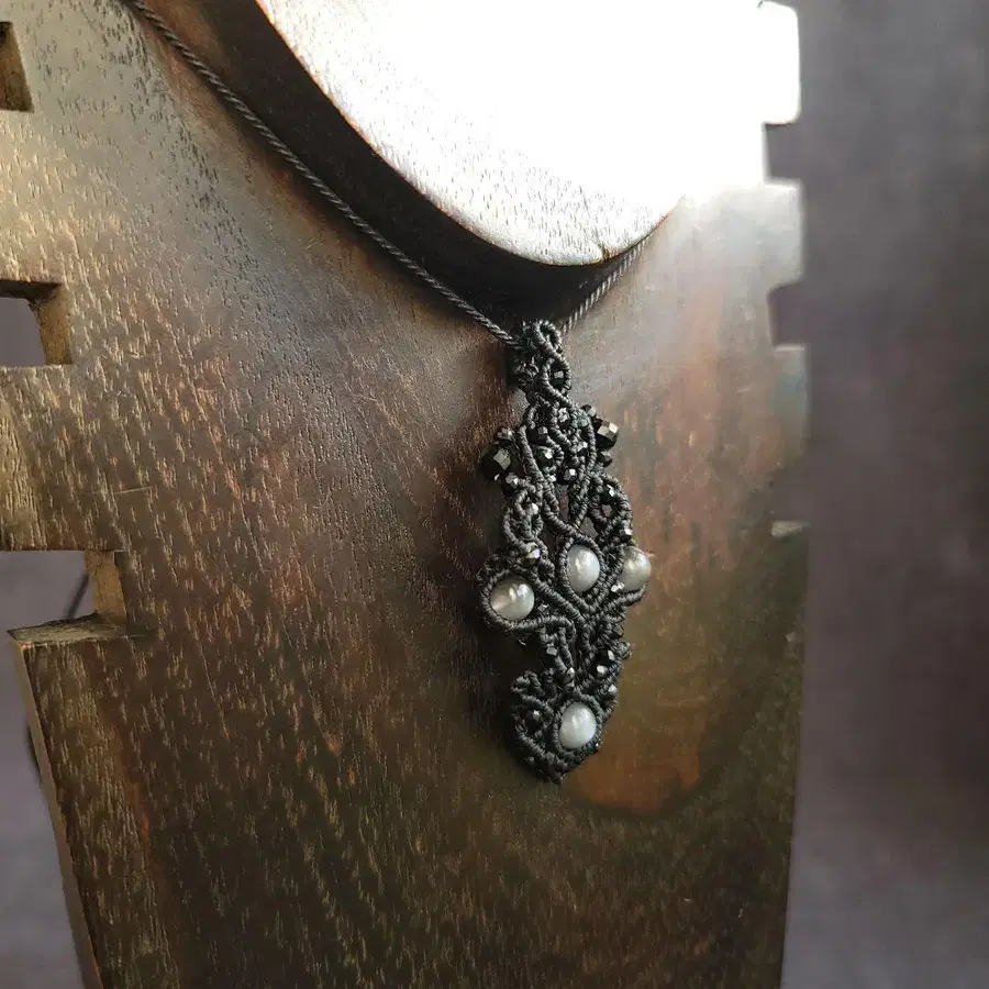 실버 샤인 블랙 그레이 문스톤 6mm를 사용하여 마크라메 펜던트를 제작했습니다.
