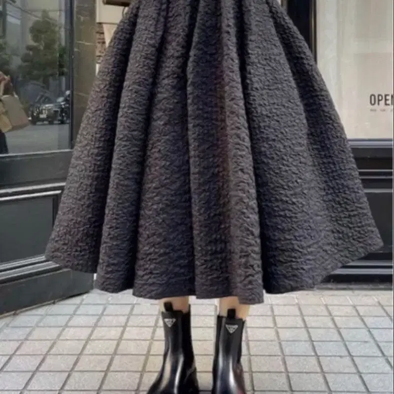 표정감이 있는 자카드 소재를 사용한 플레어 스커트. 원단을 풍부하게 사용하고 깊게 잡은 턱이 볼륨을 만들어 줍니다. 밑단으로 퍼지는 실루엣이 여성스러우며, 빳빳한 소재를 사용하여 볼륨감 있는 모양을 유지해 줍니다. 매우 가볍고 은은한 광택이 나는 소재는 고급스러움을 더해줍니다. 코디네이트의 주인공이 될 스커트입니다.