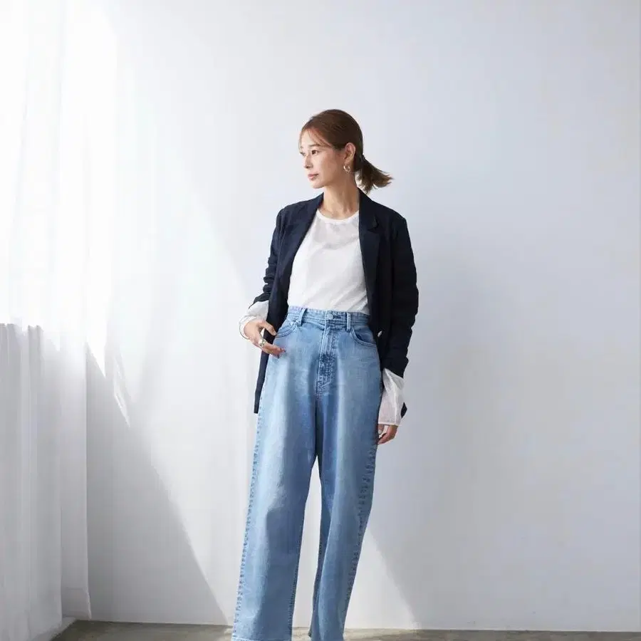 LEA의 인기 색상이 JOAN에도 등장했습니다. 산뜻한 라이트 블루 색상으로, 전체적으로 하얀 파우더 같은 느낌이 나는 부드러운 인상입니다. 옅은 색상이지만 히게(자연스러운 주름)가 있고, 허벅지 부분의 하이라이트도 확실하게 들어가 있어 다리가 슬림해 보입니다. 나노 미스트 가공이라는, 기존 데님 가공보다 물 사용량을 줄일 수 있고 환경에도 친화적인 가공을 했습니다. 나노 미스트 가공 특유의 하얀색과 파란색이 모호하게 섞인 분위기가 특징인 제품입니다. 하얀색이나 밝은 색상과 잘 어울리며, 산뜻한 스타일을 이 제품 하나로 완성할 수 있습니다.